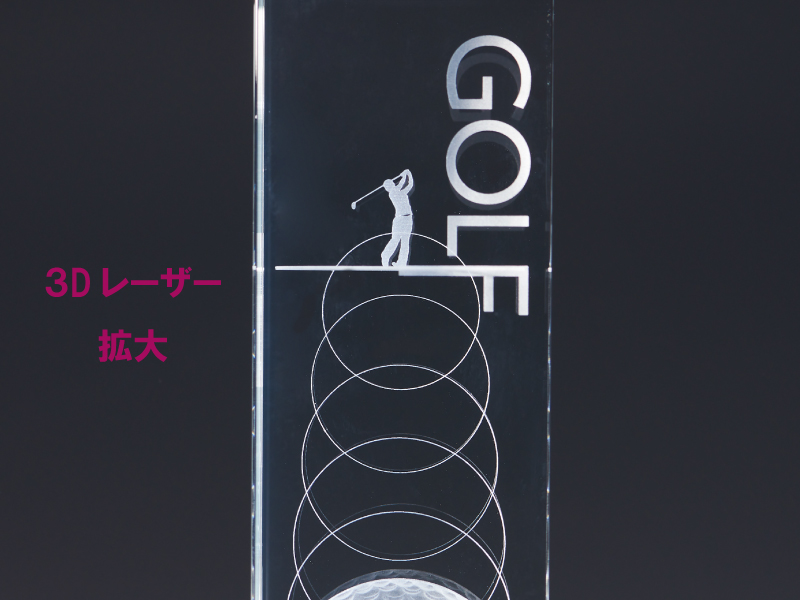 3Dレーザー加工による緻密な彫刻が、まるで宙に浮かぶように輝くクリスタルトロフィー。透き通るようなクリスタルの輝きがプレイヤーの栄光の瞬間を美しく演出します。ゴルフコンペやホールインワン、ベストスコア賞などの特別な記念に最適です。