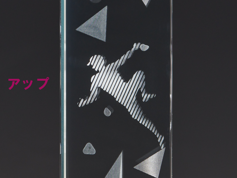 3Dレーザー加工による緻密な彫刻が、まるで宙に浮かぶように輝くクリスタルトロフィー。透明度の高いクリスタルガラスに、立体的なモチーフや文字を精密に再現し、見る角度によって表情を変える美しさが魅力です。ボルダリングは、他のスポーツにはない独特の美しさや難易度、そして戦略性も持ち合わせておりかっこいい種目です!ぜひボルダリングの大会にご活用ください!