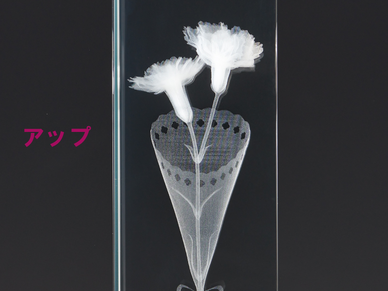 3Dレーザー加工による緻密な彫刻が、まるで宙に浮かぶように輝くクリスタルトロフィー。透明度の高いクリスタルガラスに、立体的なモチーフや文字を精密に再現し、見る角度によって表情を変える美しさが魅力です。