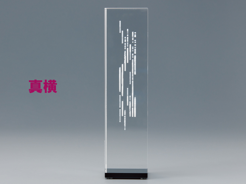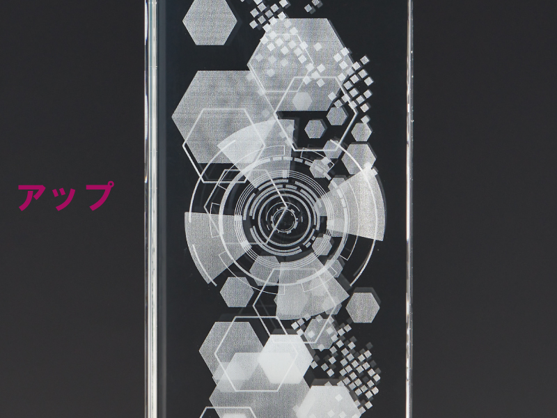3Dレーザー加工による緻密な彫刻が、まるで宙に浮かぶように輝くクリスタルトロフィー。透明度の高いクリスタルガラスに、立体的なモチーフや文字を精密に再現し、見る角度によって表情を変える美しさが魅力です。