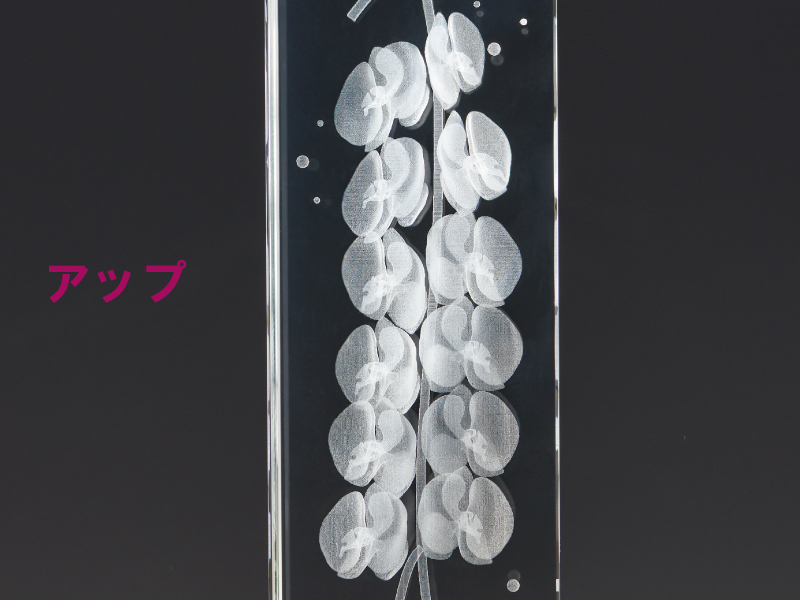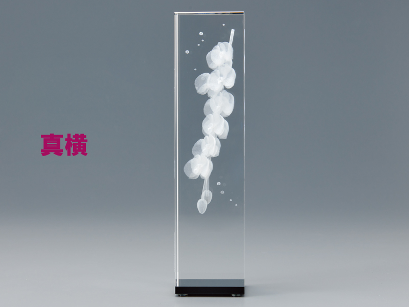 3Dレーザー加工による緻密な彫刻が、まるで宙に浮かぶように輝くクリスタルトロフィー。透明度の高いクリスタルガラスに、立体的なモチーフや文字を精密に再現し、見る角度によって表情を変える美しさが魅力です。