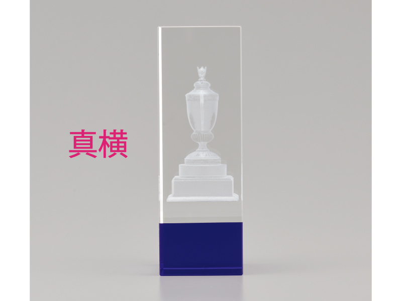 3Dレーザー加工による緻密な彫刻が、まるで宙に浮かぶように輝くクリスタルトロフィー。透明度の高いクリスタルガラスに、立体的なモチーフや文字を精密に再現し、見る角度によって表情を変える美しさが魅力です。ダンス大会、ピアノコンクール、サッカー・空手・剣道などのスポーツ大会や、永年勤続やイベントなど様々な表彰シーンにご利用いただけるトロフィーとなります。