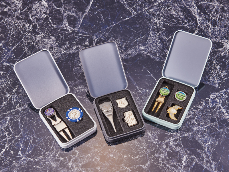 ゴルフ仲間へのプレゼントに最適なマーカーとフォークの缶ケース入りセット