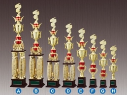 3本柱・4本柱トロフィーとは、別名チャンピオントロフィーといい、台座の上の柱が3本(4本)に分かれた大型のトロフィーです。