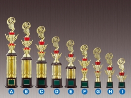 3本柱・4本柱トロフィーと同様、スポーツ大会やコンクールの表彰式に適しているのが、1本柱トロフィー(スタンダードトロフィー)です。