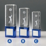 3Dレーザー加工による緻密な彫刻が、まるで宙に浮かぶように輝くクリスタルトロフィー。透き通るようなクリスタルの輝きがプレイヤーの栄光の瞬間を美しく演出します。ゴルフコンペやホールインワン、ベストスコア賞などの特別な記念に最適です。
