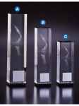 3Dレーザー加工による緻密な彫刻が、まるで宙に浮かぶように輝くクリスタルトロフィー。透明度の高いクリスタルガラスに、立体的なモチーフや文字を精密に再現し、見る角度によって表情を変える美しさが魅力です。