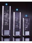 3Dレーザー加工による緻密な彫刻が、まるで宙に浮かぶように輝くクリスタルトロフィー。透明度の高いクリスタルガラスに、立体的なモチーフや文字を精密に再現し、見る角度によって表情を変える美しさが魅力です。