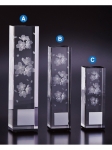 3Dレーザー加工による緻密な彫刻が、まるで宙に浮かぶように輝くクリスタルトロフィー。透明度の高いクリスタルガラスに、立体的なモチーフや文字を精密に再現し、見る角度によって表情を変える美しさが魅力です。