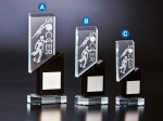 3Dレーザー加工による緻密な彫刻が、まるで宙に浮かぶように輝くクリスタルトロフィー。透明度の高いクリスタルガラスに、立体的なモチーフや文字を精密に再現し、見る角度によって表情を変える美しさが魅力です。サッカーの大会にご活用ください。