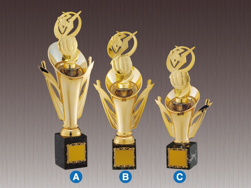 スポーツ大会によくご使用される一本柱トロフィーになります。サッカー、野球、空手、柔道、剣道など各種大会の表彰におすすめです。