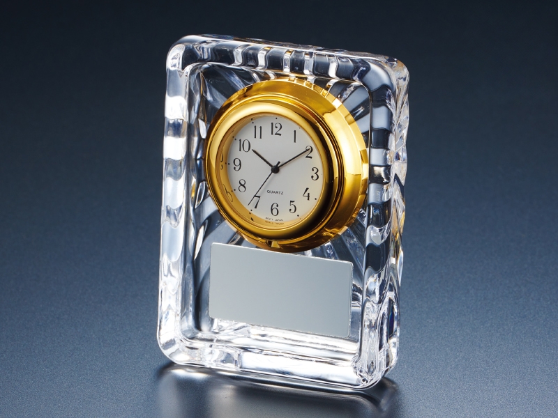 成型ガラスに時計を組み込み、プレートに社名・団体名・ロゴ・表彰文などを自由に刻印可能!記念品や贈答品にふさわしい商品です!