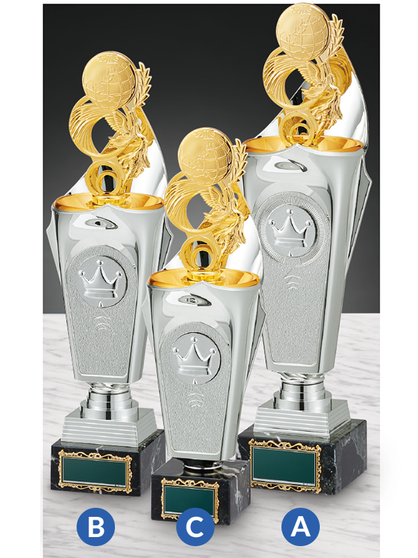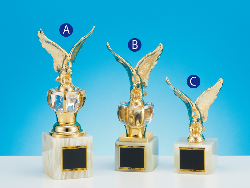 3つのサイズ展開があり、優勝者、準優勝者、入賞者と分けてオーダーすることも可能です。高級感のある台座はブラックゼブラ&コーラル大理石、もしくはブラックゼブラ大理石から選ぶことができます。