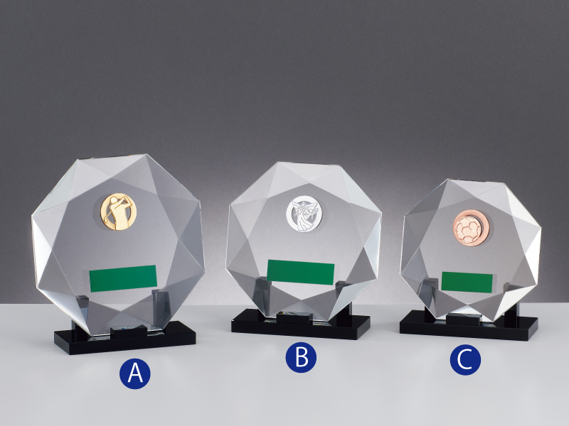 金や銀のトロフィーだと時間の経過とともに色合いや輝きは失われてゆきますが、クリスタルトロフィーなら色あせることがありません。その分、埃や傷など手入れには十分配慮する必要がありますが、材質が劣化することが無いのは大きな特色です。クリスタルトロフィーは半永久的な透明感や輝かしさから、今かなりの人気を博しています。