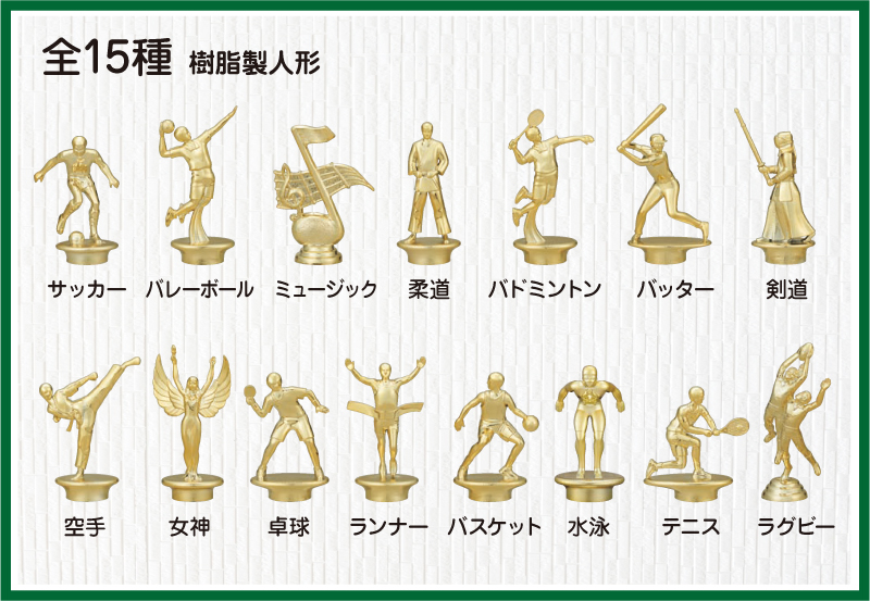 軽量でコンパクト、どなたでも扱いやすいリーズナブルなトロフィー。バスケットボール、バレーボール、ソフトボール、野球、サッカーなどのスポーツ大会や、合唱コンクールやクイズ大会など幅広い用途にお使いいただけます。